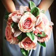 Our wedding flowers (with the exception of hand-tieds) are fashioned using the traditional method of individually wiring and greening all flowers and foliage. Although more time-consuming, we prefer this technique over using push-in foam frames, to ensure bouquets remain in shape throughout your special day and beyond.