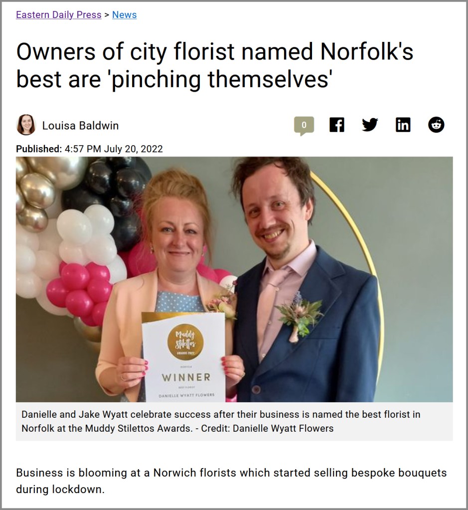 We are so very grateful to everyone who kindly voted for us to receive this title at the 2022 Muddy Stilettos Awards in Norfolk – especially overwhelming to achieve this amazing honour in only our second year.