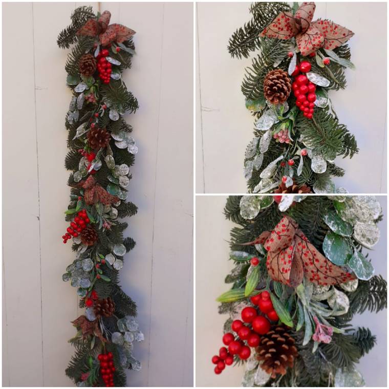 6 foot garland from £120. Shorter lengths available from £25 per foot. Fairy lights, baubles, and ornaments can be added.