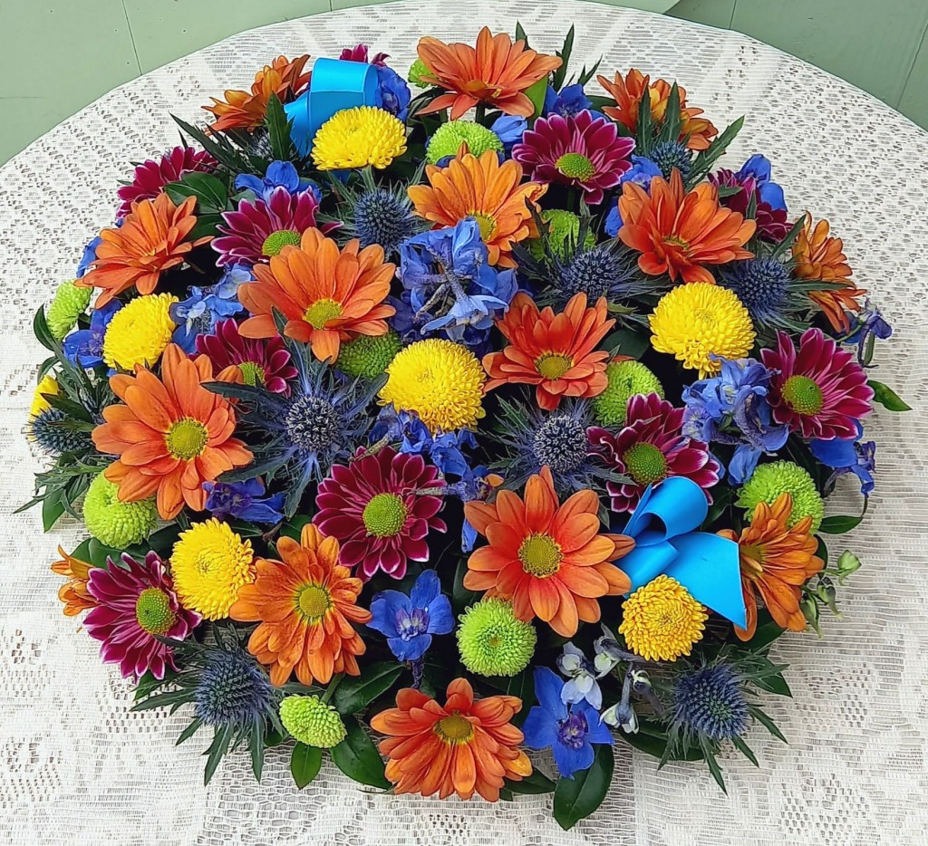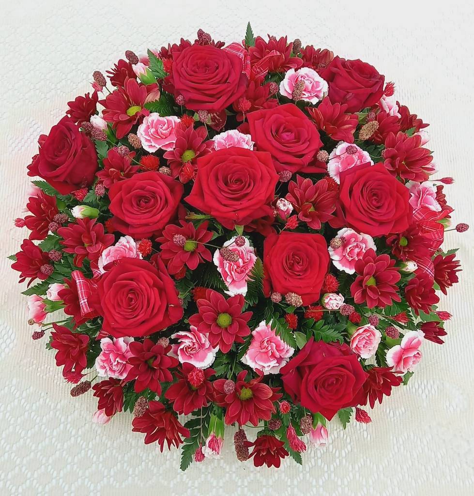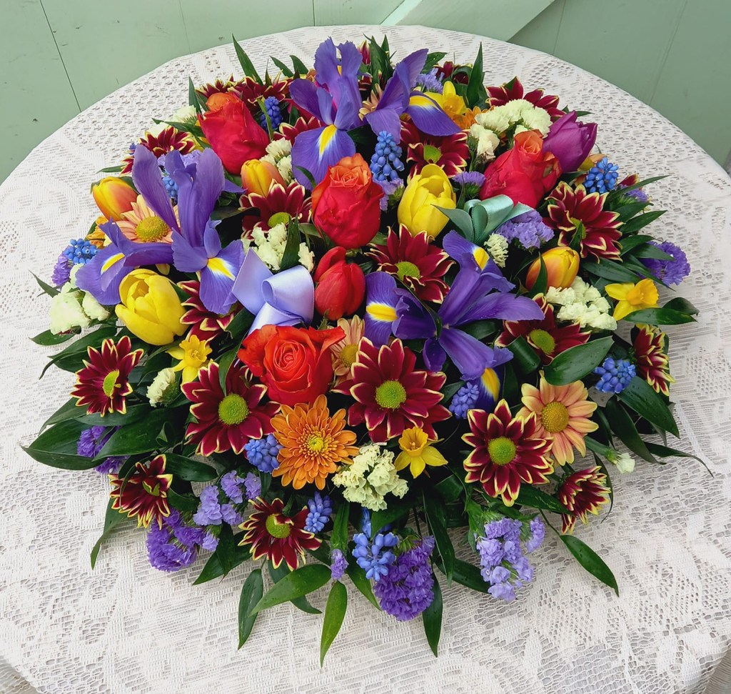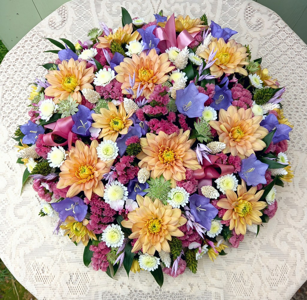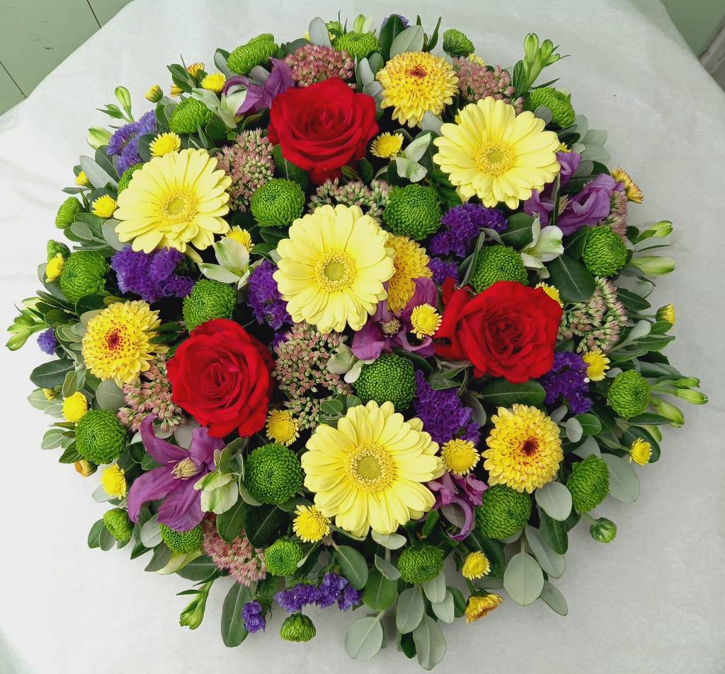Classic memorial fresh floral posies, available in colours of your choice, and sized 8, 10, 12, 14, 18 or 22 inches.