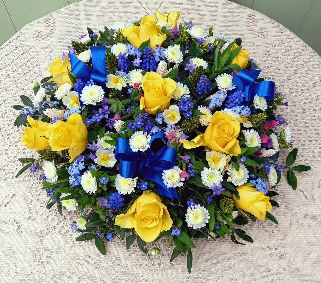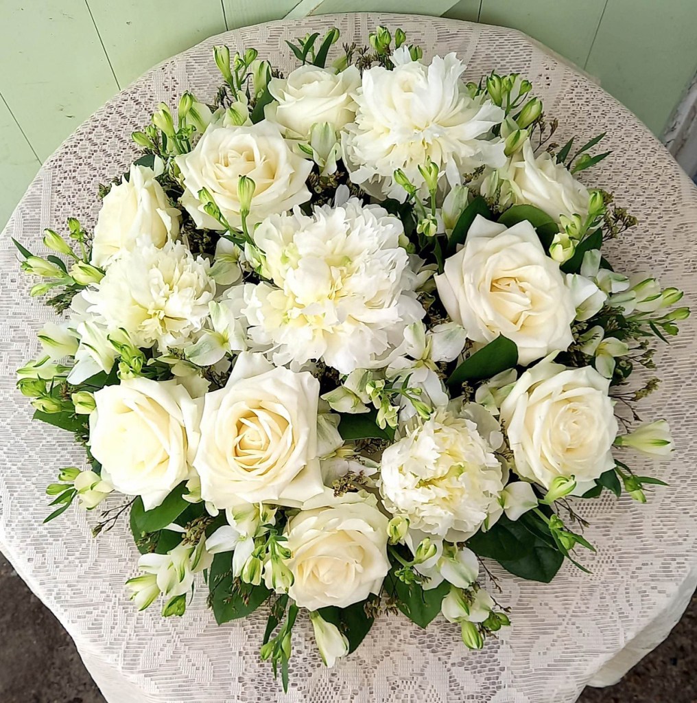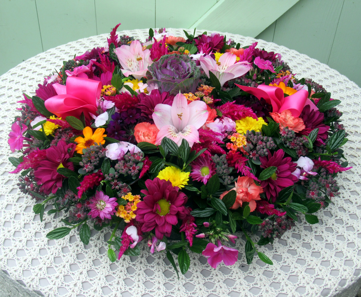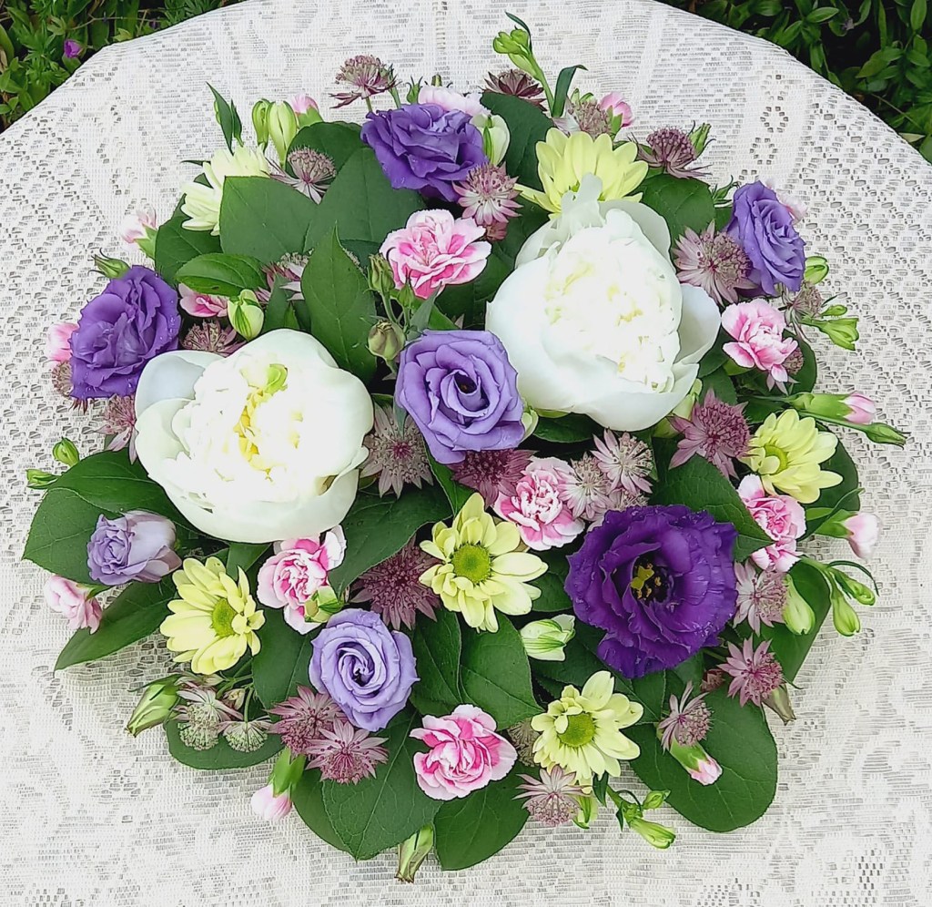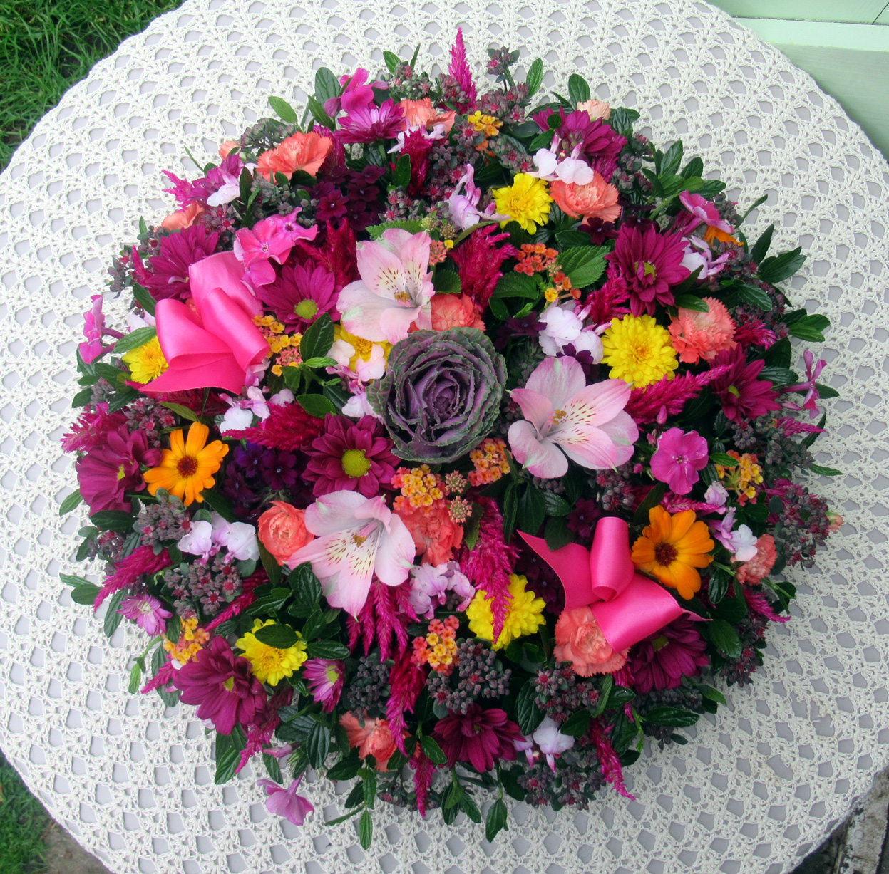 Classic memorial fresh floral posies, available in colours of your choice, and sized 8, 10, 12, 14, 18 or 22 inches.
