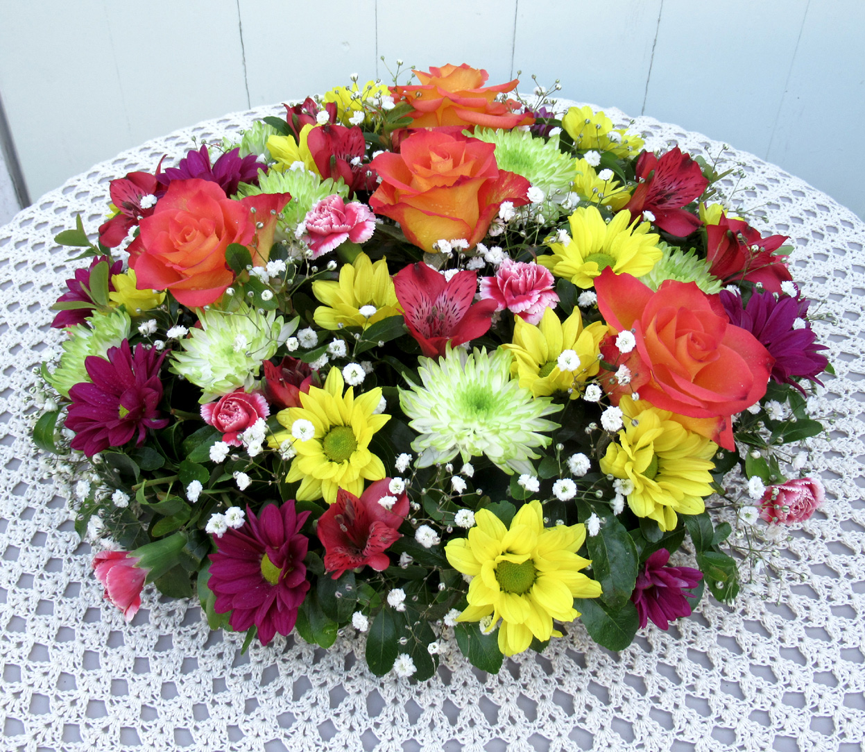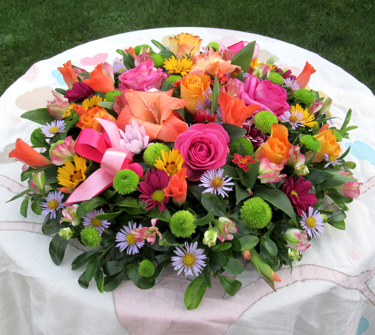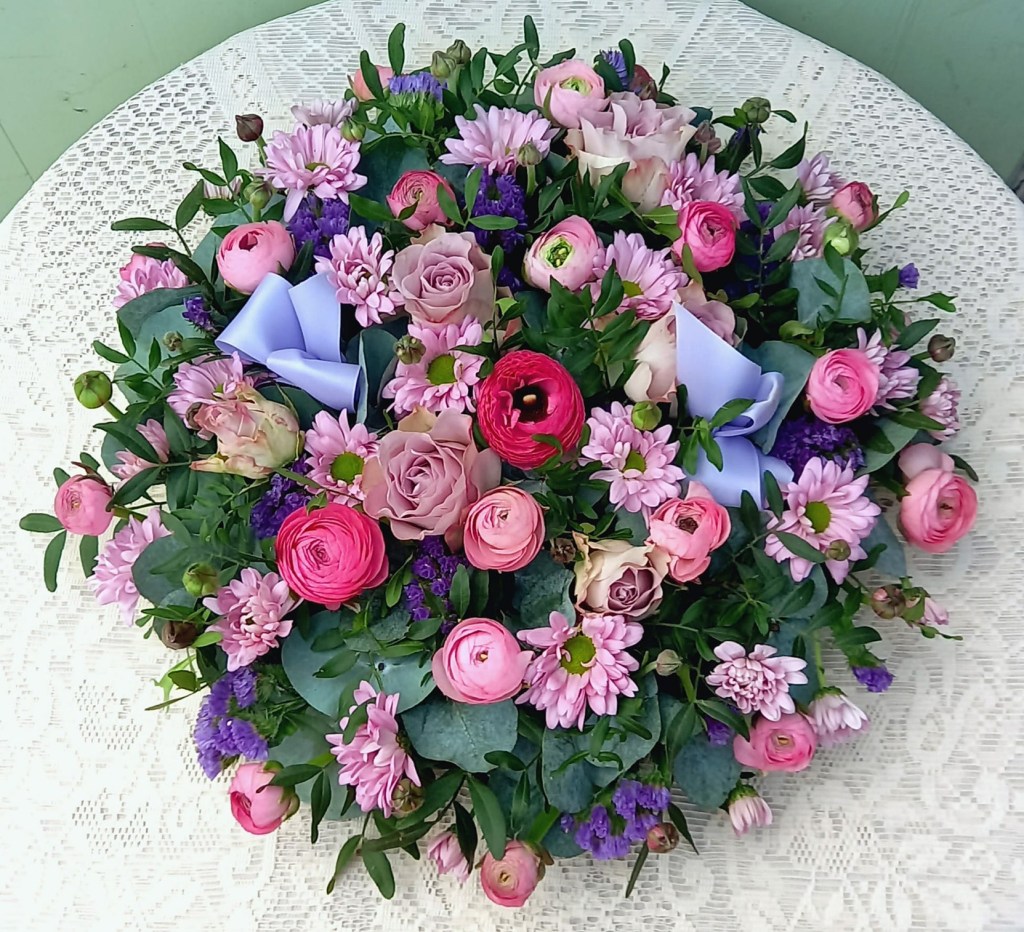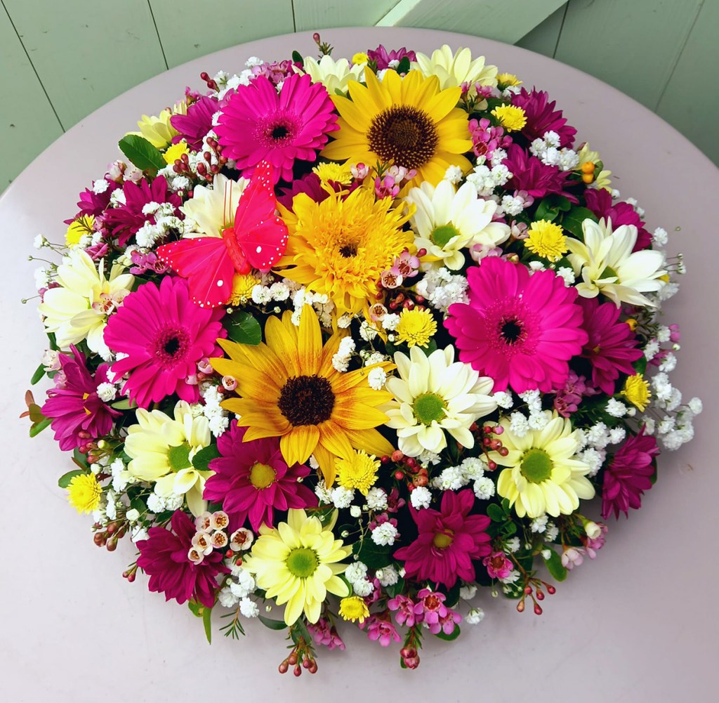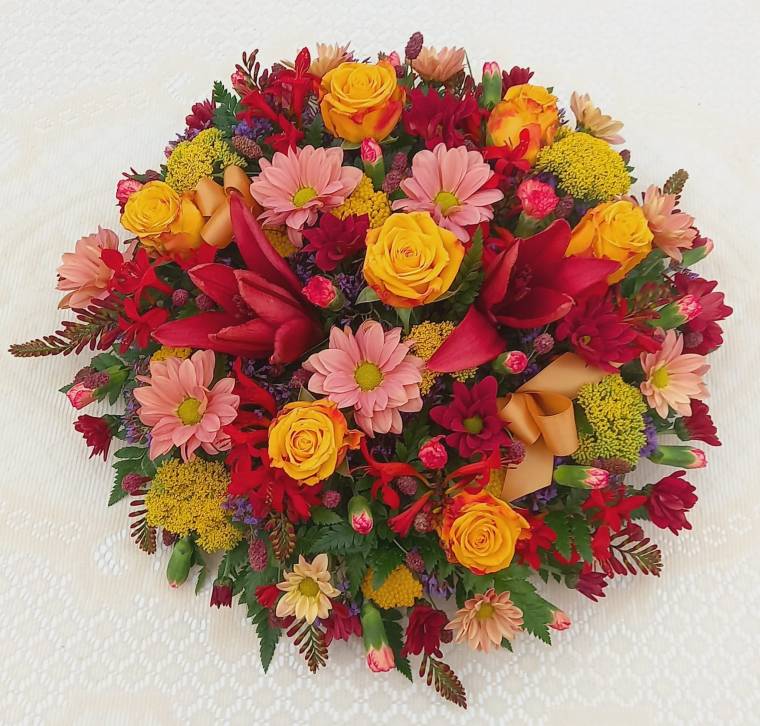Classic memorial fresh floral posies, available in colours of your choice, and sized 8, 10, 12, 14, 18 or 22 inches.