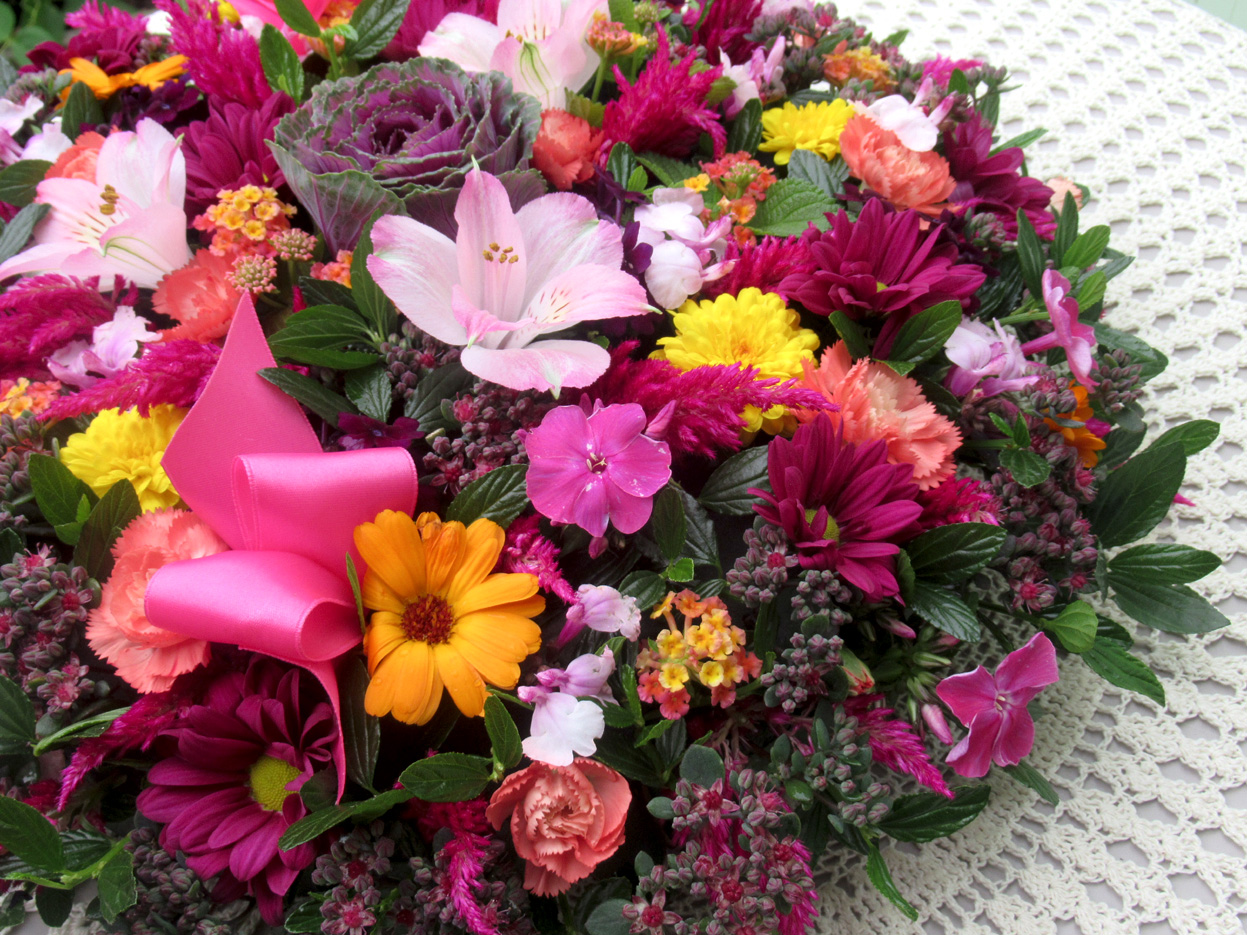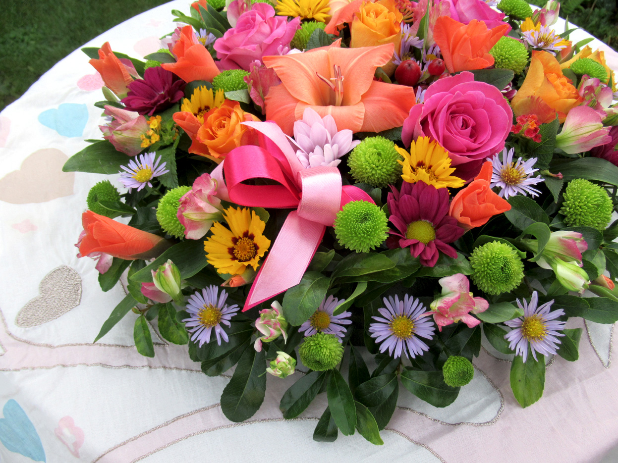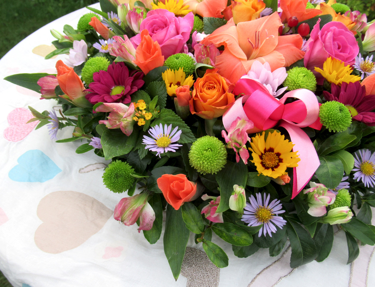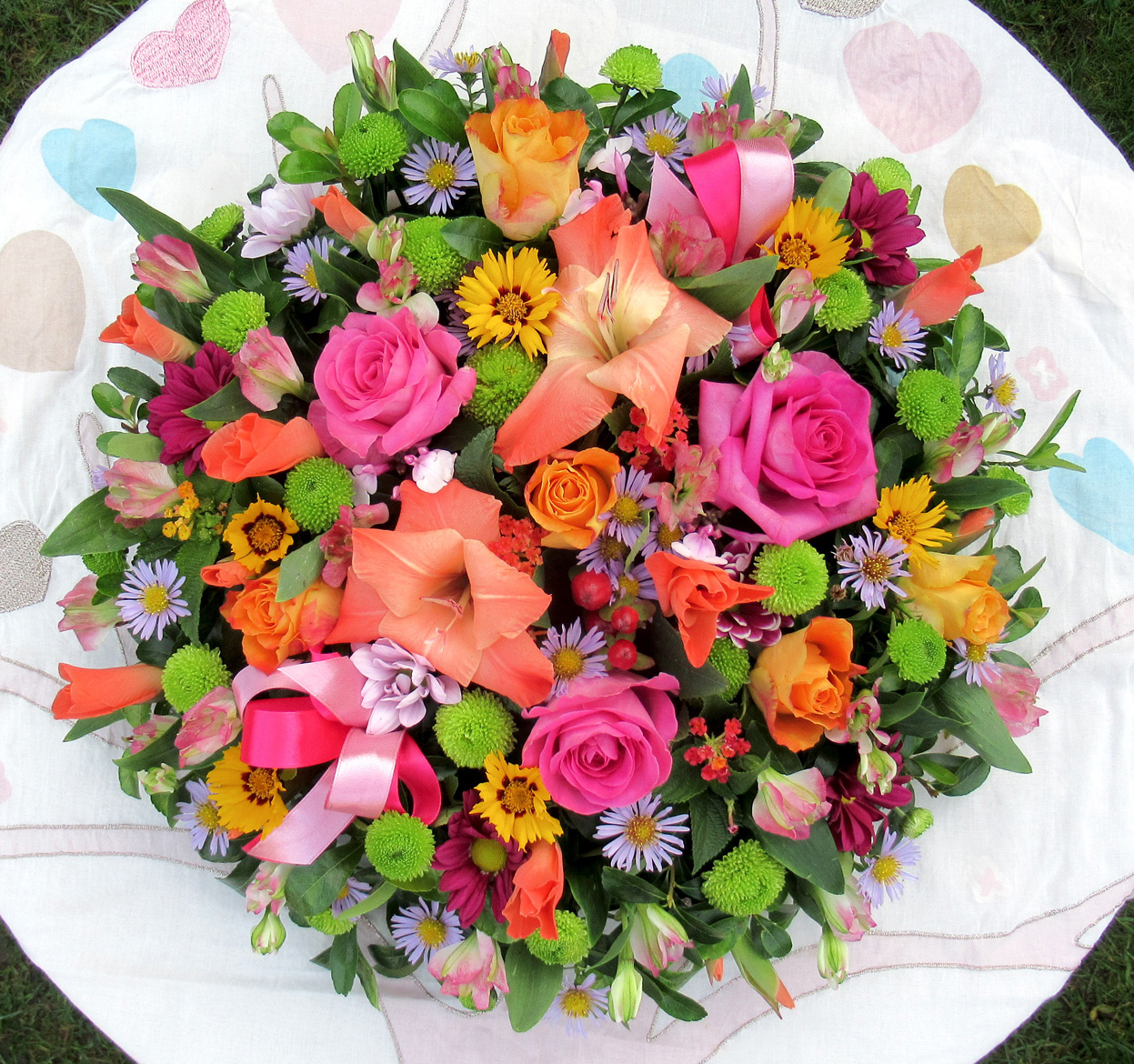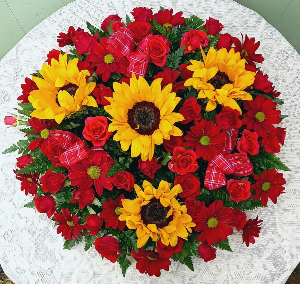 Classic memorial fresh floral posies, available in colours of your choice, and sized 8, 10, 12, 14, 18 or 22 inches.