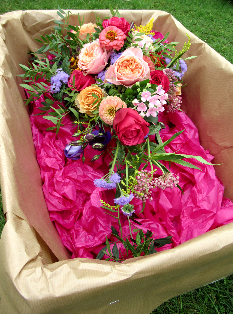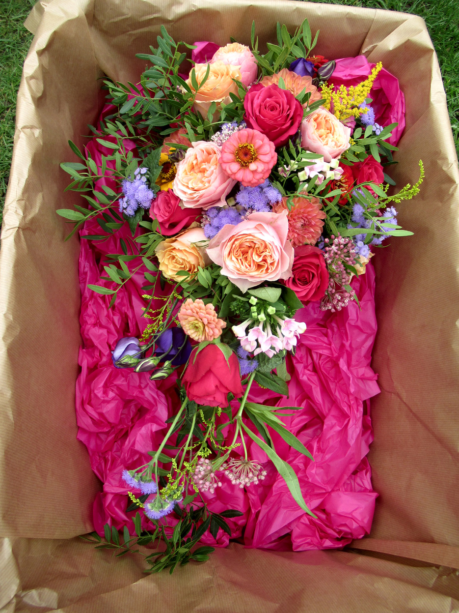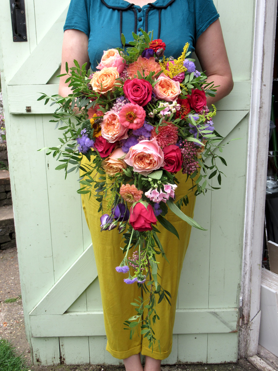 Alice ~ A fresh flower hand-tied shower bouquet exploding with roses.
