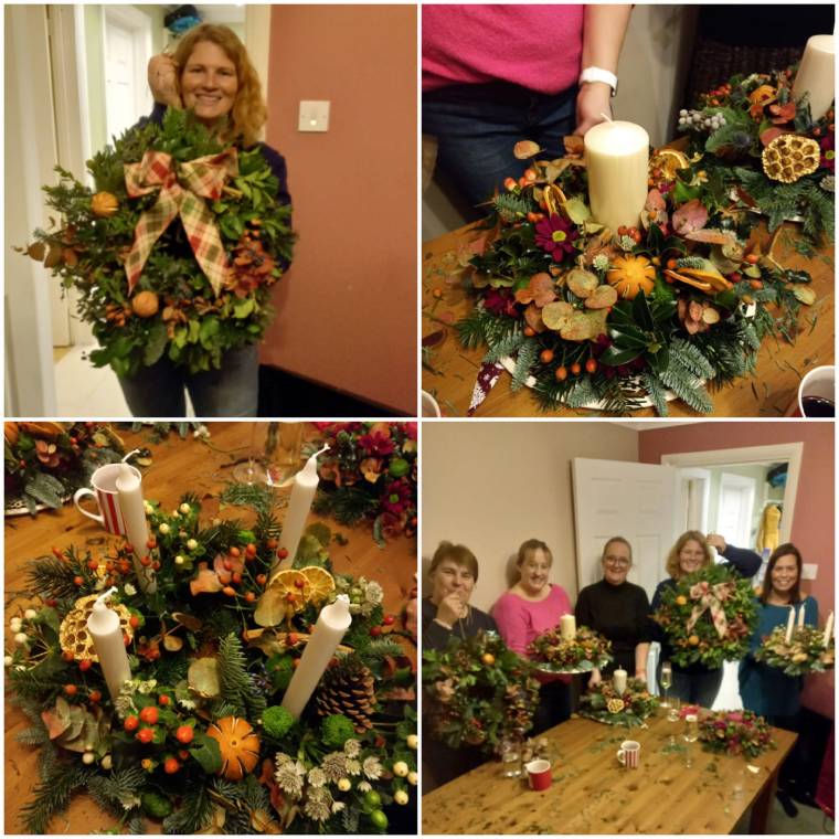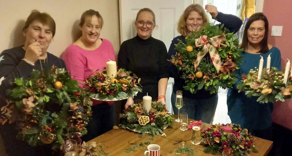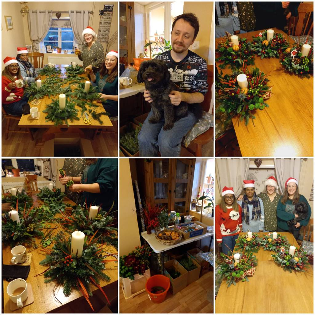 Pick’n’Mix Festive Workshop – 2/12/2022. Thank you to Emma and family for hosting a wonderful evening of wreath and centrepiece making with their friends at home in Dussindale. We had a lovely time, and their creations were absolutely stunning.
