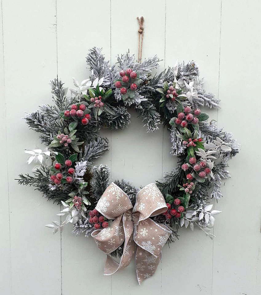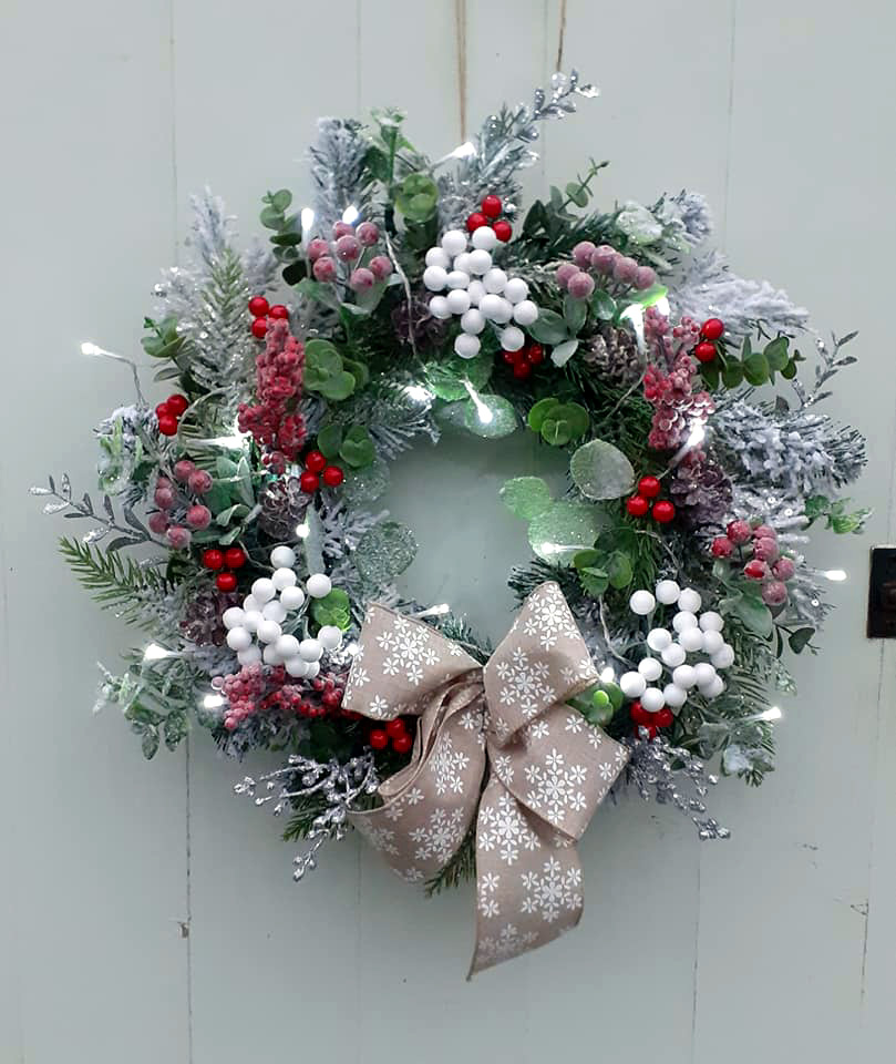 A classic festive decoration, usually hung on a front door. Constructed from artificial, dried, and sparkling elements, these can be fully customised and inspired by your ideas. Available for delivery in Norfolk, collection from NR3, or mail order.